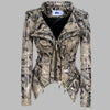 Casaco de Couro Estilo Rock com Padrão de Cobra Bege para Mulher