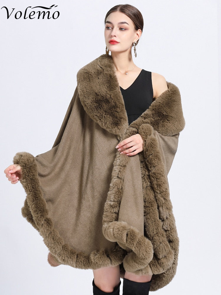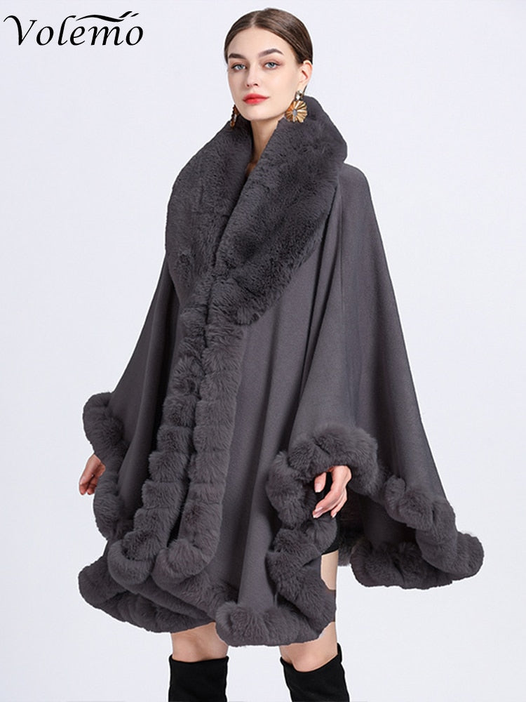 • Decorado com Pêlo: O pêlo decorativo adiciona um toque luxuoso a este casaco gótico. Os detalhes em pêlo rodeiam o decote em V, adicionando textura e elegância ao conjunto.