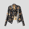 Casaco de Pele Preto com Ilhós Metálicos Steampunk