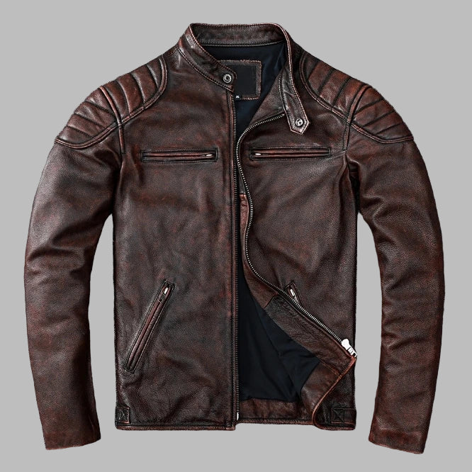 Casaco de Pele Rock Castanho Vintage com Costuras Ver opcoes