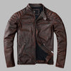 Casaco de Pele Castanho Vintage Rock com Costuras
