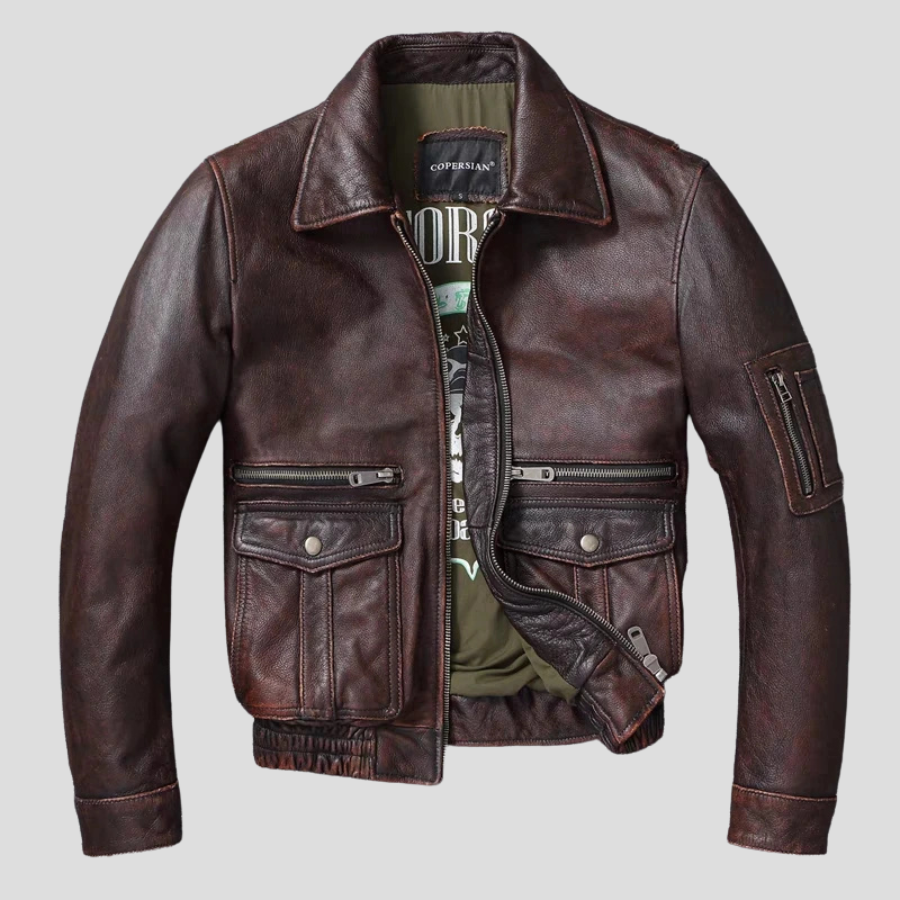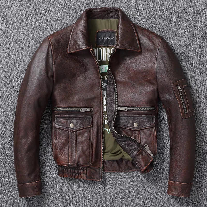 Kurtka Skórzana Steampunk Brązowa Męska Vintage Pilotka