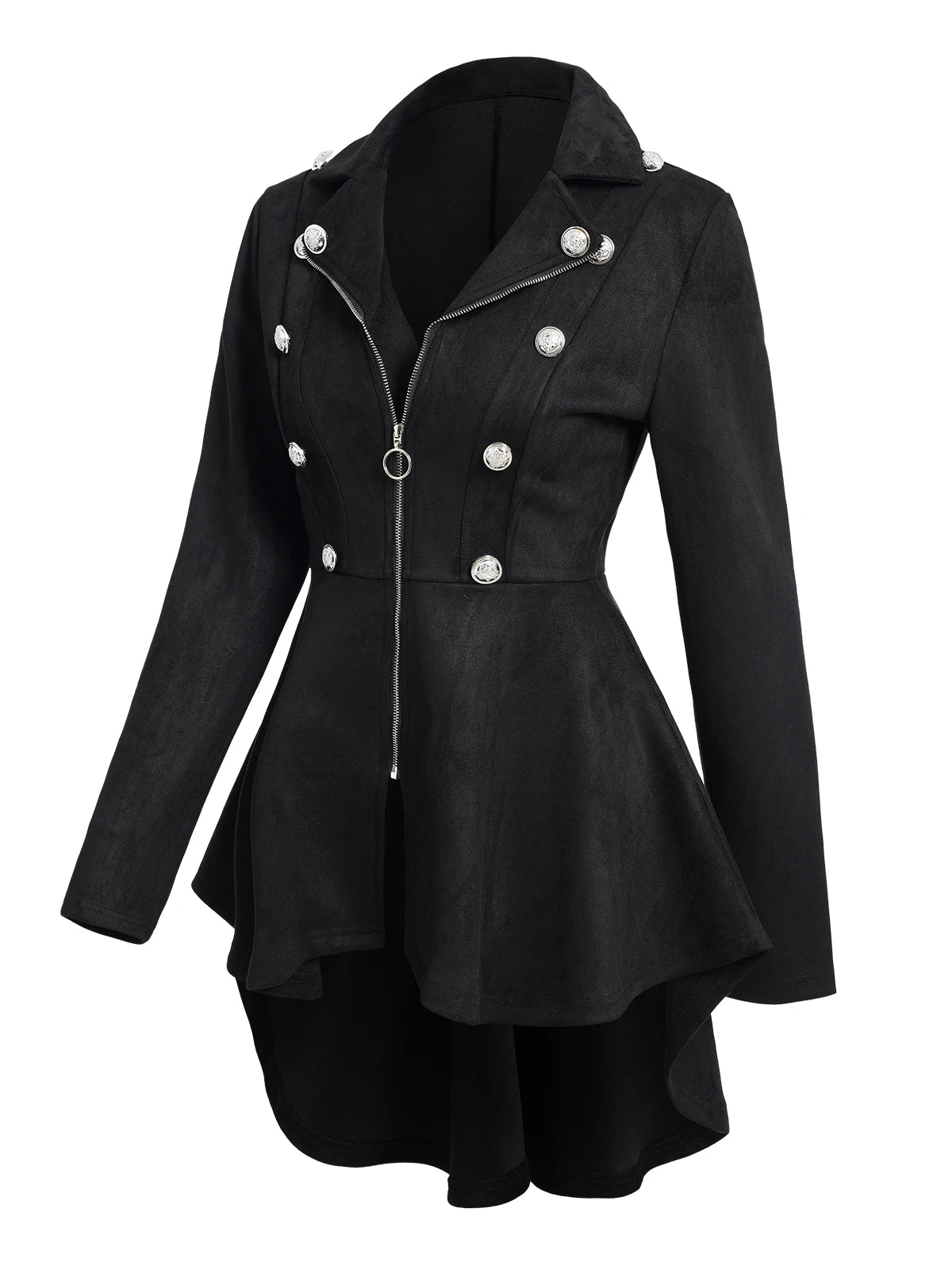 Casaco feminino gótico preto evasé, botões e fecho éclair Ver opcoes