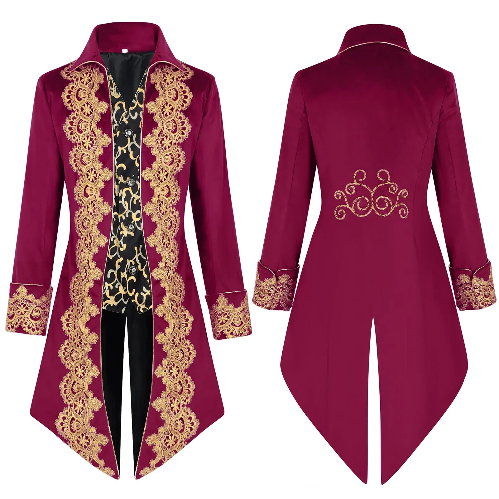 Casaco gótico barroco com renda dourada para homem vermelho