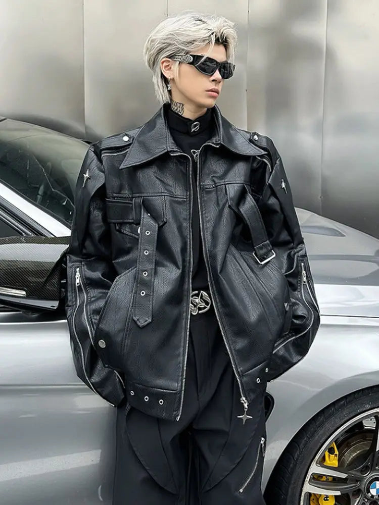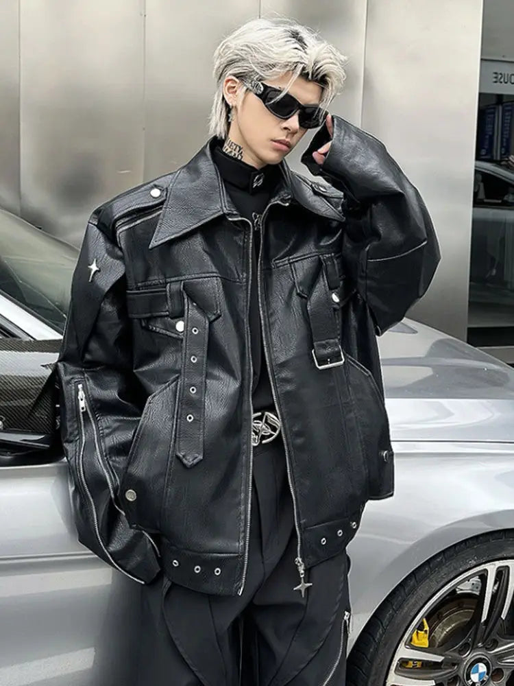 Opte por um estilo marcante e ousado com este casaco masculino de pele sintética – ideal para o outono. Com bolsos práticos, corte solto e estilo motard inspirado na tendência Y2K, é perfeito tanto para o dia a dia como para looks urbanos streetwear.
