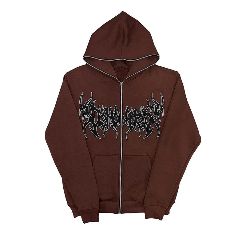 Casaco gótico Grunge com fecho de correr Castanho