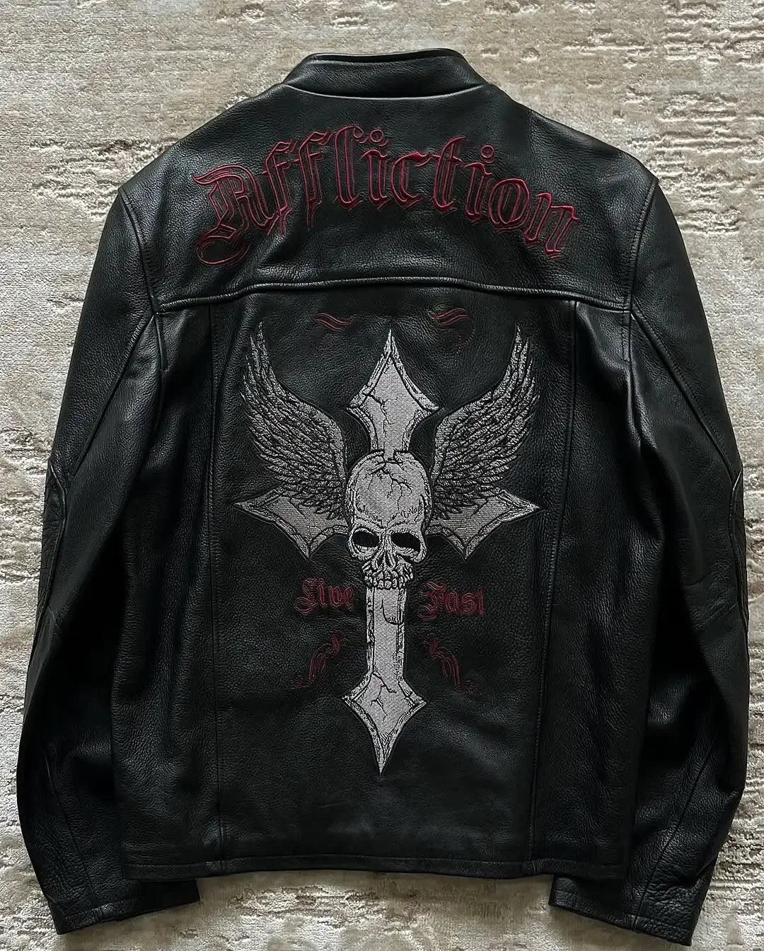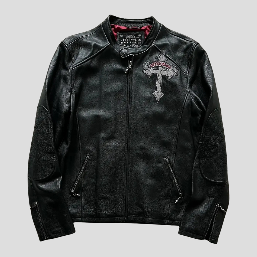 Casaco Gótico Preto de Pele com Cruz Ver opcoes