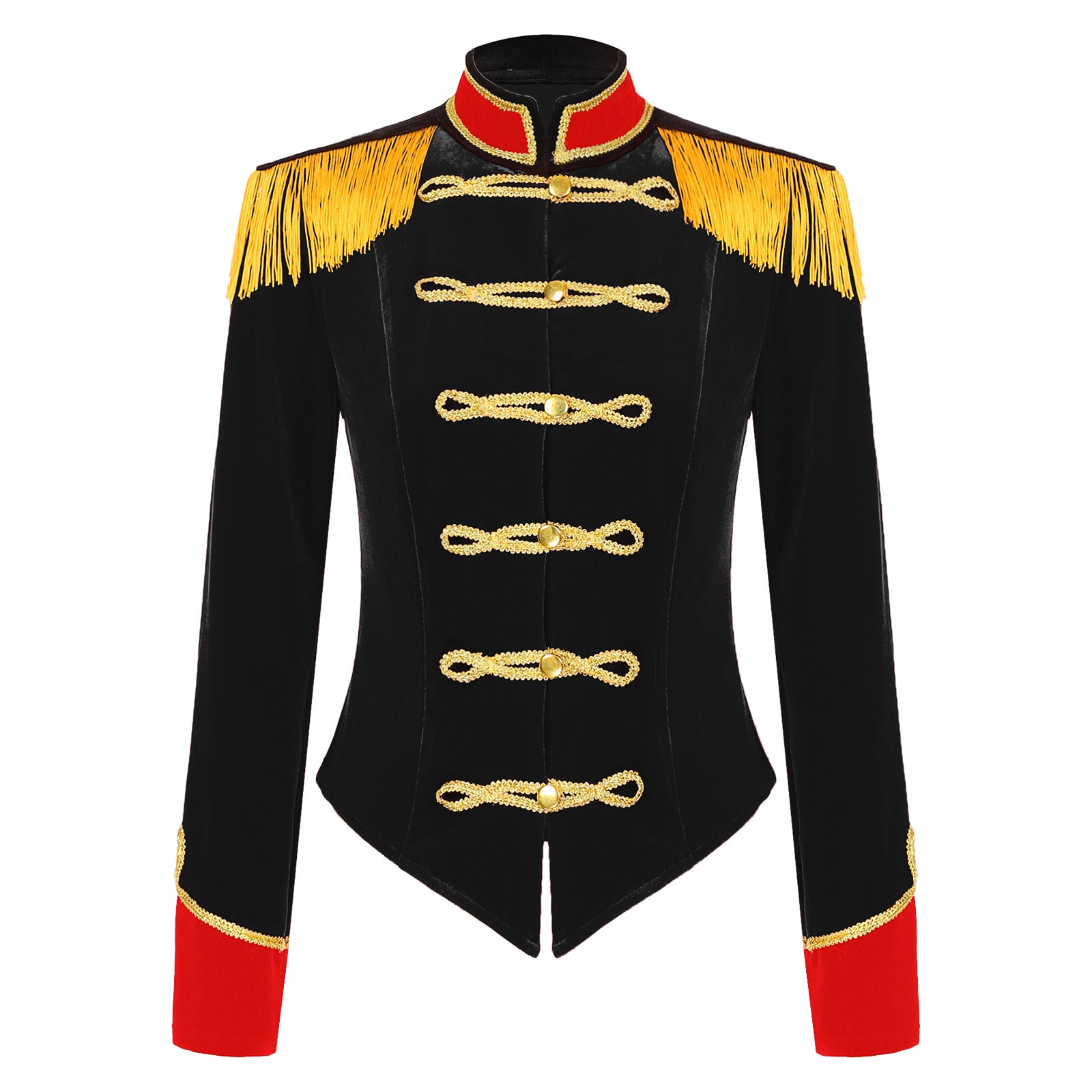 Casaco Militar Steampunk Preto com Detalhes Dourados e Franjas Ver opcoes