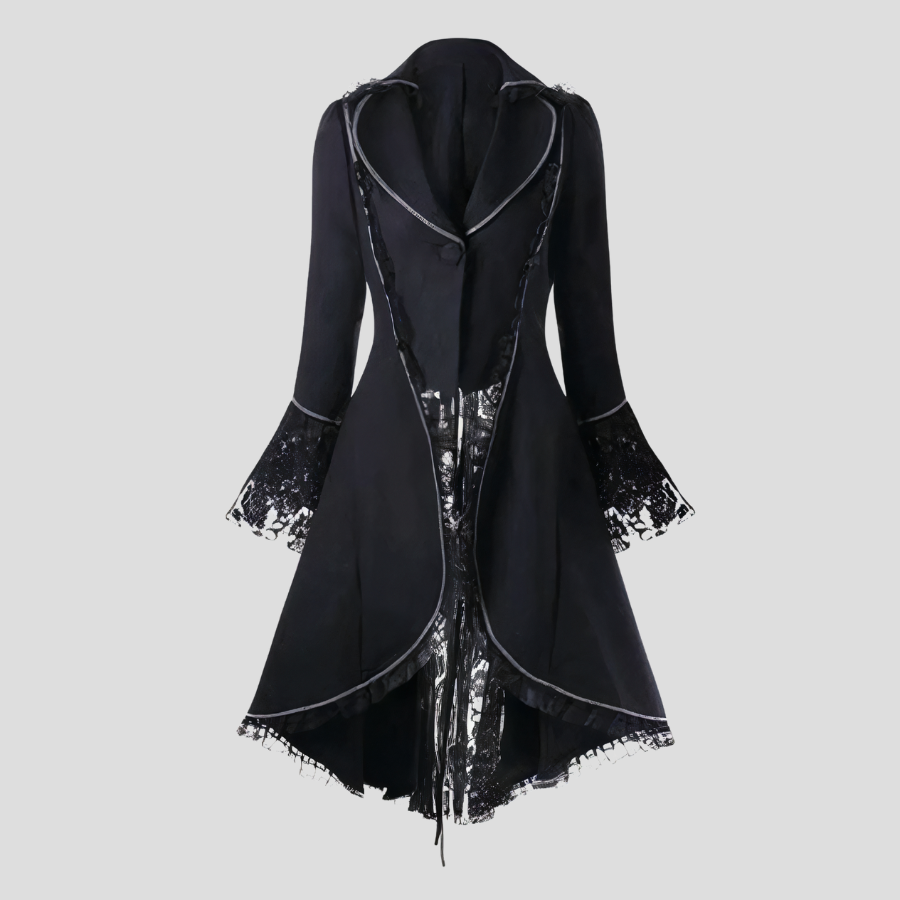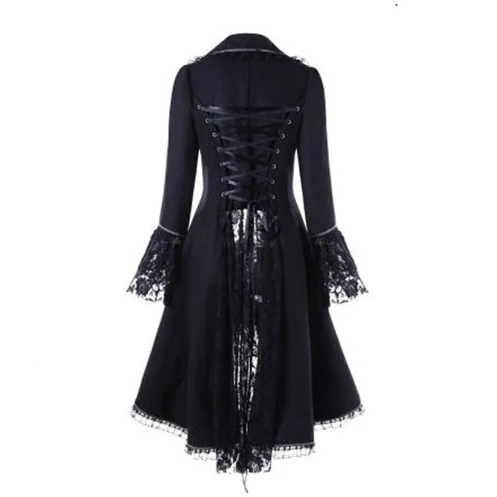 Punk Płaszcz ze Sznurowaniem i Koronkowymi Rękawami Czarny