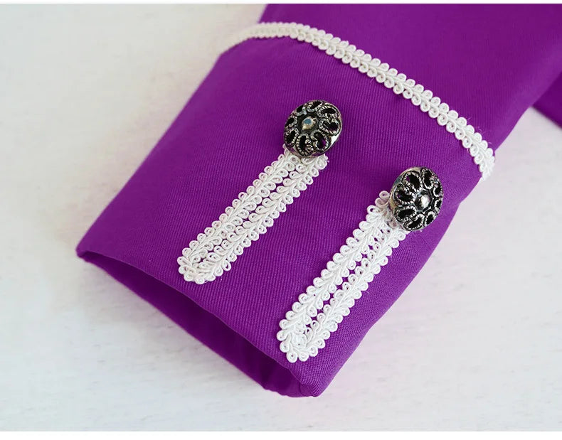 Casaco Steampunk Roxo com Cordões Decorativos Brancos Masculino 4XL