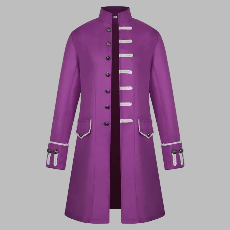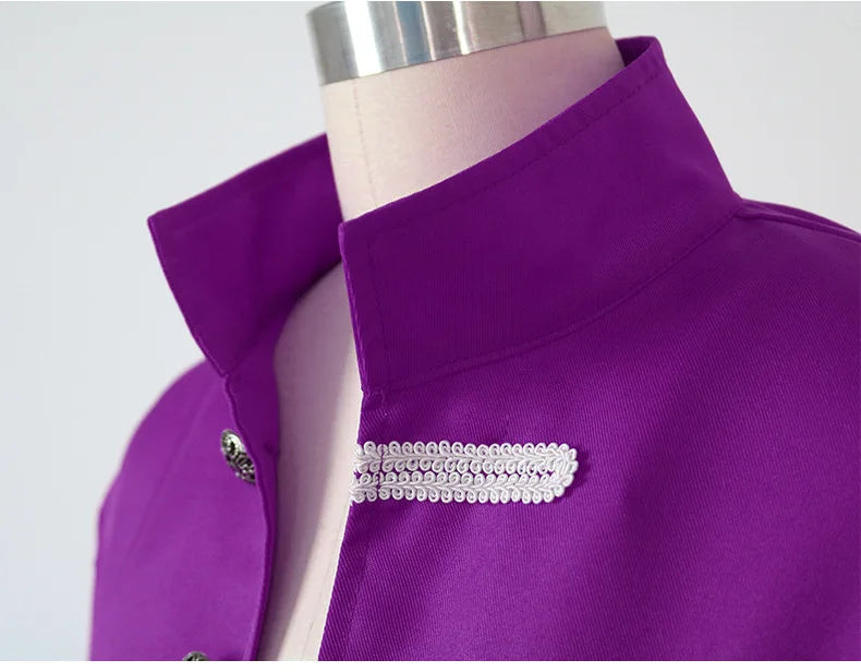 Casaco Steampunk Roxo com Cordões Decorativos Brancos Masculino