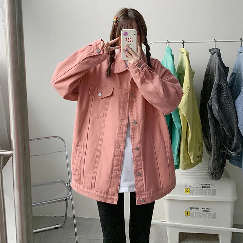 Casaco Jeans Oversize Vintage Rosa Punk Rock