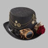 Chapéu Steampunk Preto com Rosa Vermelha e Óculos