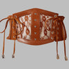 Cinto Steampunk Corset Castanho em Pele com Renda e Cordões Feminino