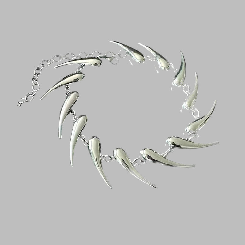 Colar Choker Gótico Prateado com Garras Metálicas
