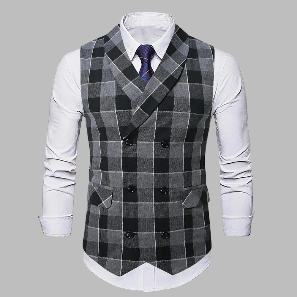 Colete Clássico Punk Xadrez Cinza Estilo Metal
