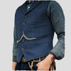 Colete Steampunk Azul Marinho com Corrente de Bolso Padrão Espinha de Peixe
