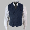 Colete Steampunk Azul Marinho de Abotoamento Duplo com Detalhes Tradicionais Metal