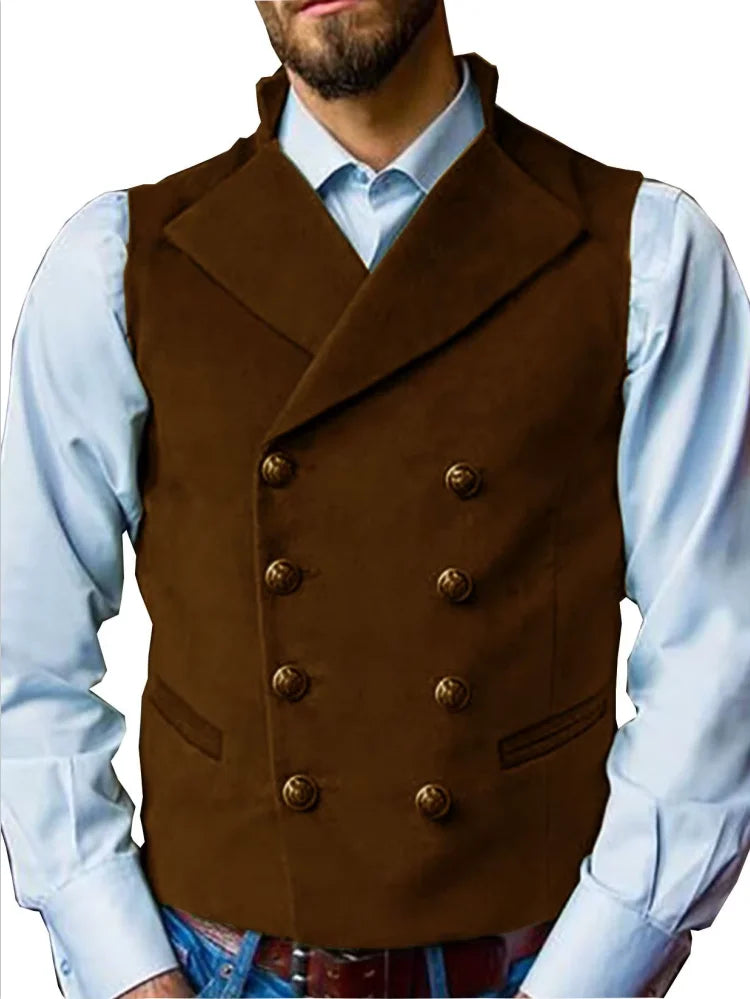 Steampunk Kamizelka Dwurzędowa z Guzikami Brązowa Klasyczna