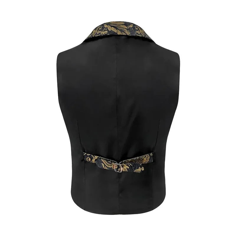 Colete Masculino Steampunk com Padrão Barroco Preto