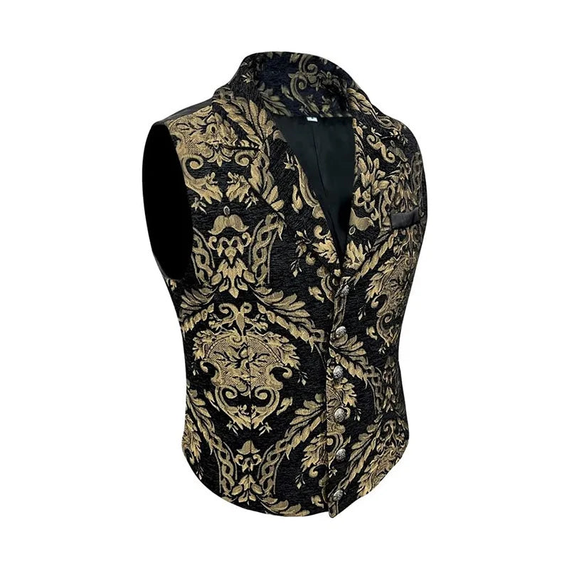 Colete Steampunk Masculino com Padrão Barroco Preto