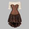 Conjunto Steampunk Corset com Blusa e Saia Assimétrica Castanho 6XL