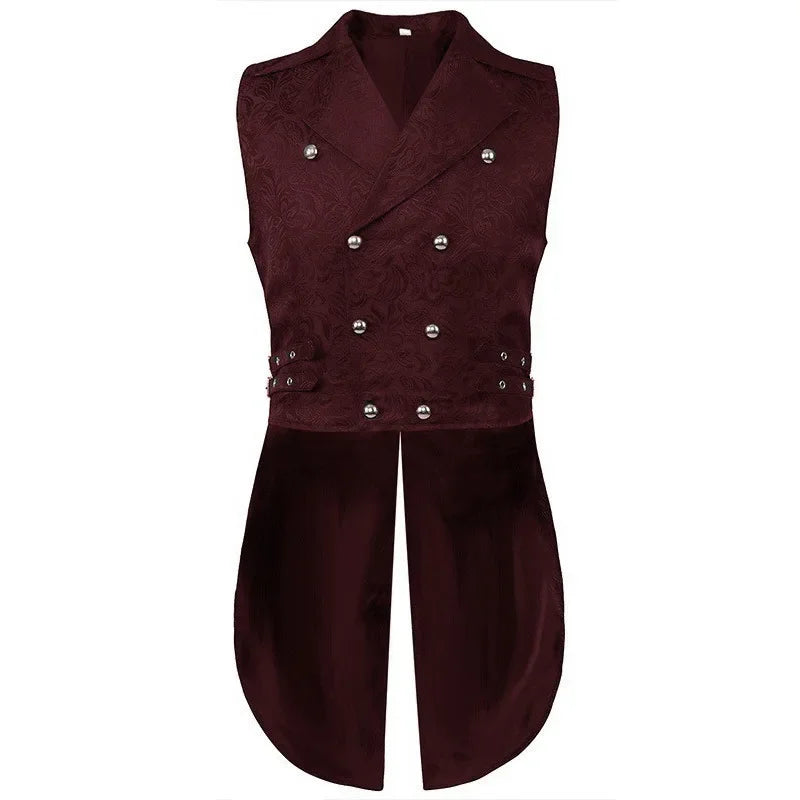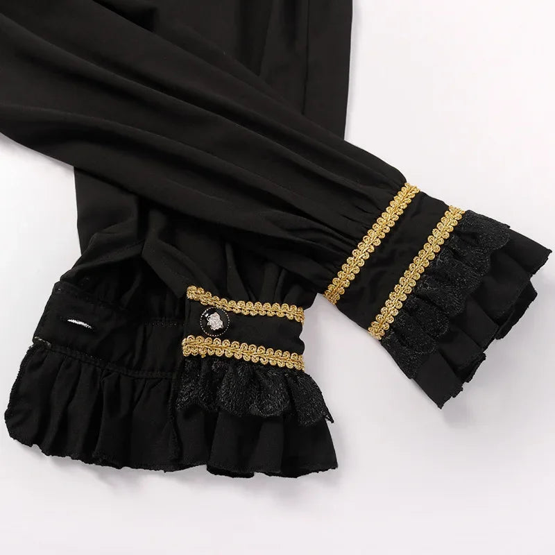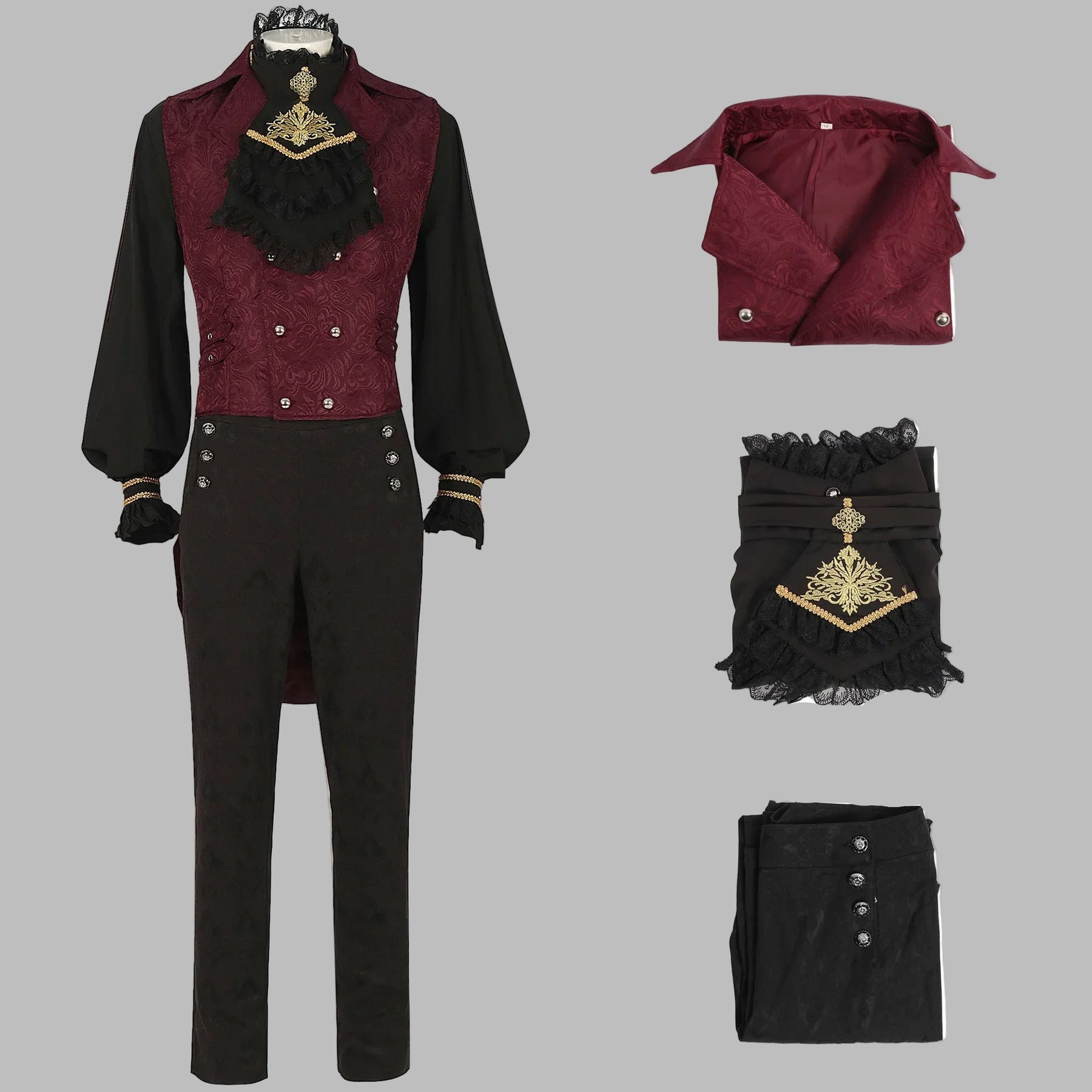 Conjunto Steampunk Masculino Bordô e Preto com Renda Detalhes Dourados
