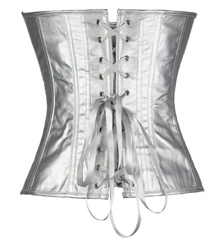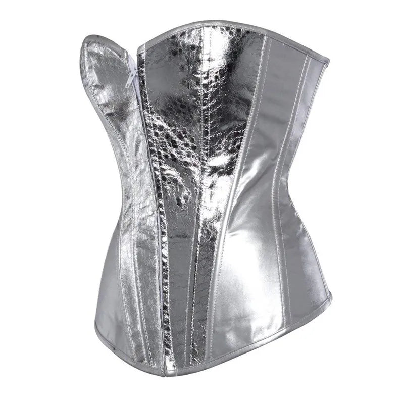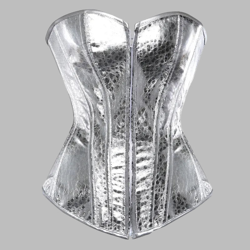 Corselet Metálico Prateado com Efeito Pele de Cobra e Barbatanas