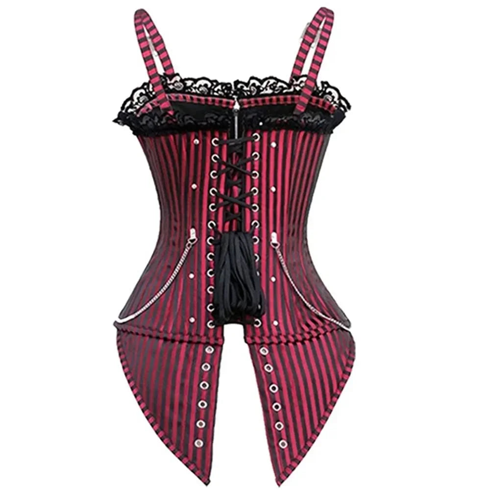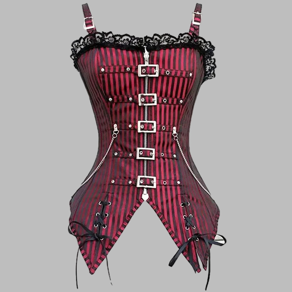 Corselet Rock Metal com Fivelas, Correntes e Cintas Bordô