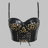 Corselete de Leopardo com Material Preto Imitando Pele e Atacadores – Estilo Punk Selvagem