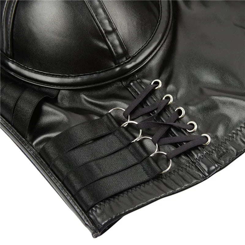 Corselet de Leopardo com Material Preto Imitando Pele e Atacadores – Estilo Punk Selvagem preto