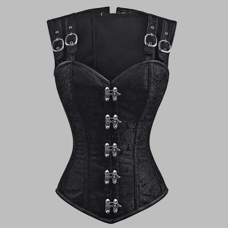 Corselete Gótico Punk Rock Preto com Fivelas Metálicas e Tachas