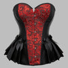 Corselete Gótico Rock com Brocado Vermelho e Laços Pretos