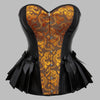 Corselete gótico steampunk com brocado dourado e detalhes pretos