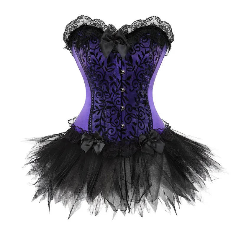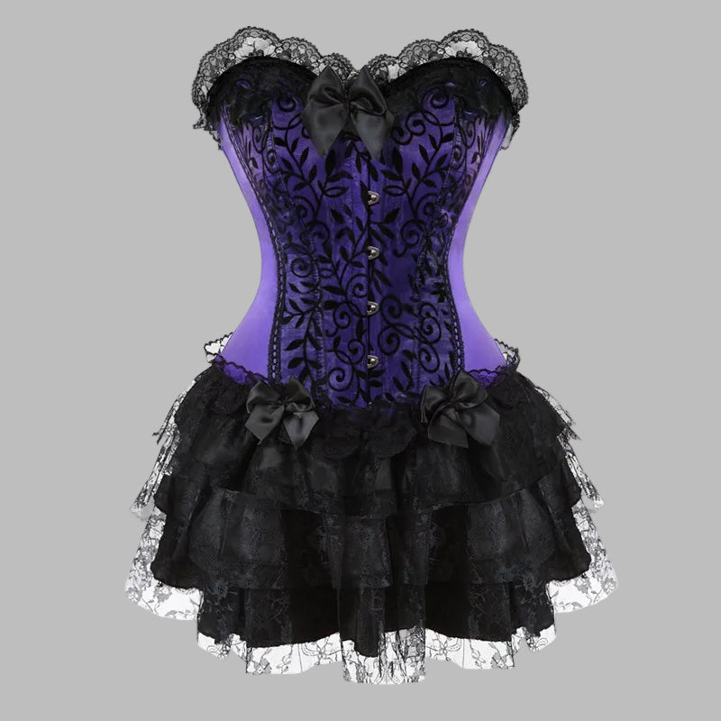 Corselet Punk Rock Roxo com Renda e Saia Preta 6XL