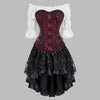 Corpetes Steampunk Bordô com Saia Hi-Lo de Renda Preta 6XL