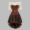 Corselete Steampunk com Cintos e Saia em Camadas Castanho 6XL