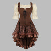 Corselete Steampunk com Atacadores e Saia de Renda Castanho 6XL
