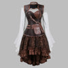 Corselete Steampunk de Couro Castanho com Cintos e Bolsos Feminino 4XL