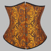 Corselete Steampunk Dourado com Brocado, Detalhes Castanhos e Acabamentos Pretos