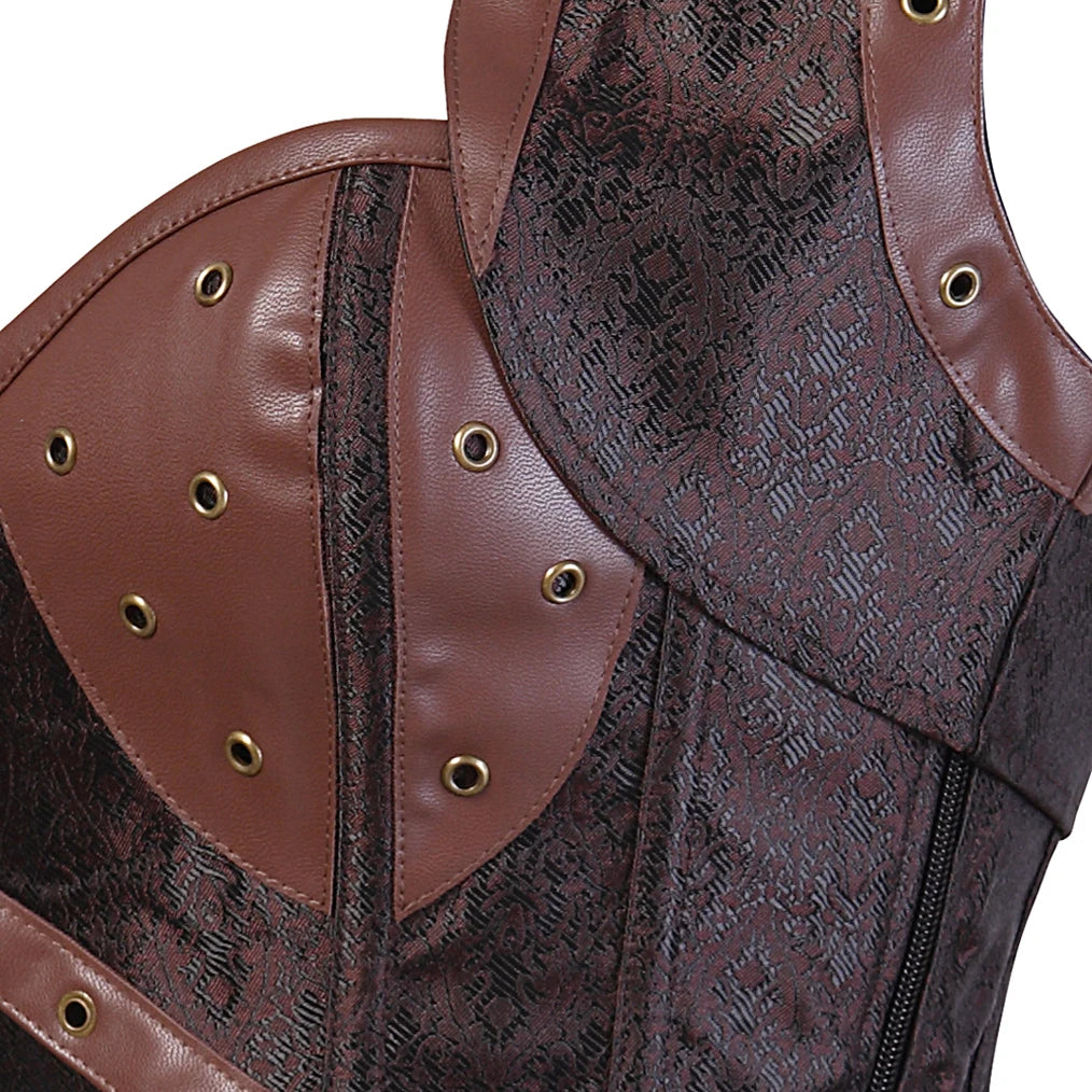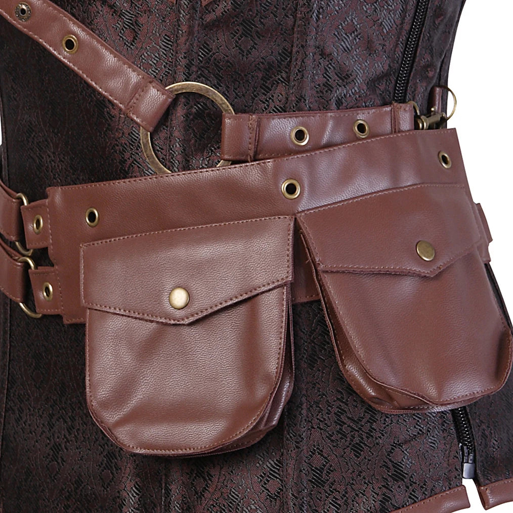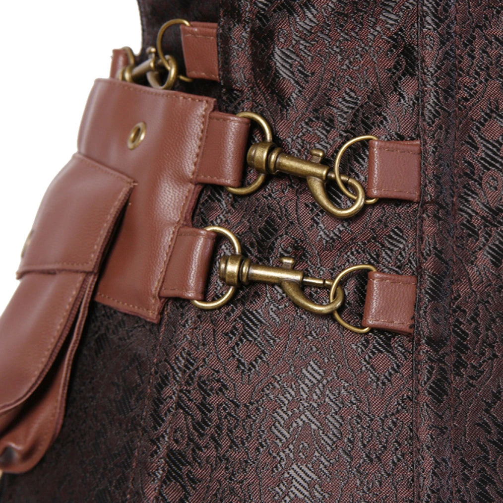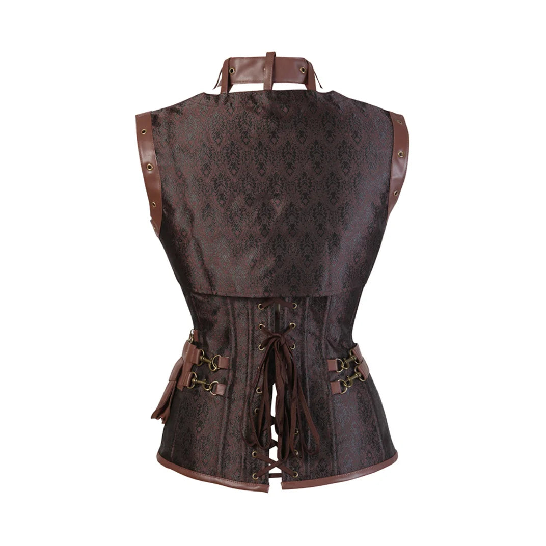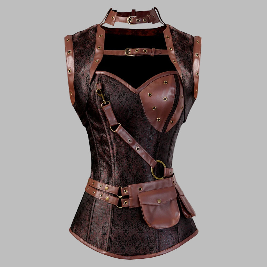Corselet Steampunk em Pele Castanha com Tiras Decorativas