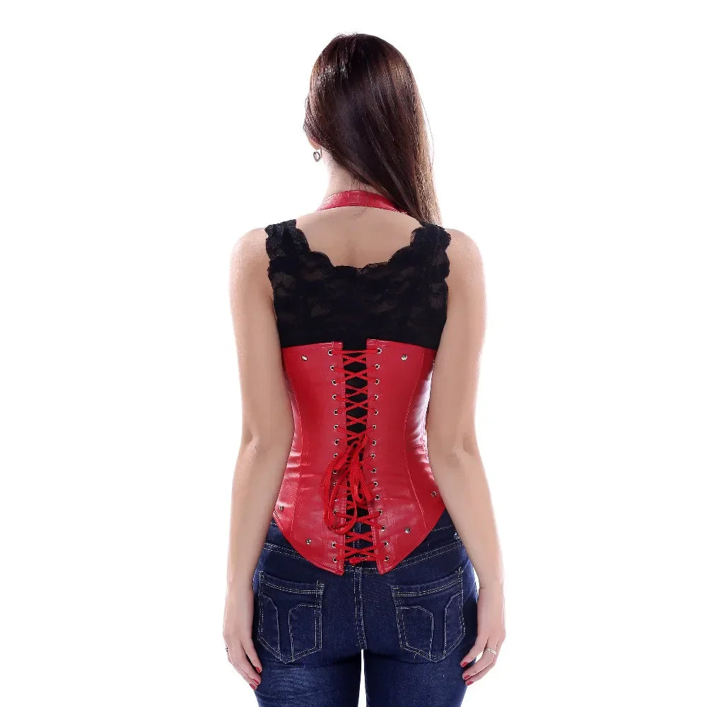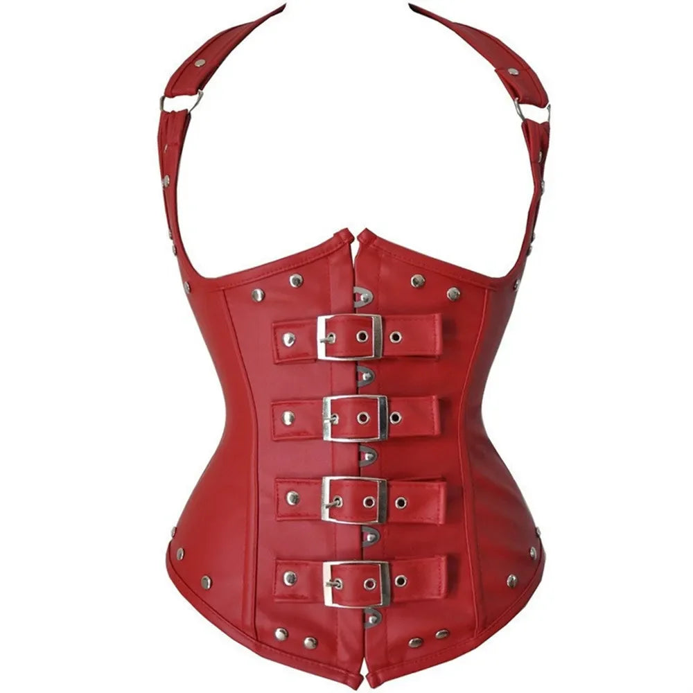 Corselet Vermelho de Pele Sintética com Fivelas – Estilo Punk Rock Feminino