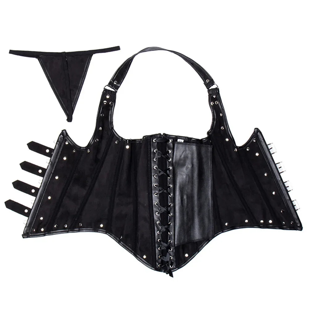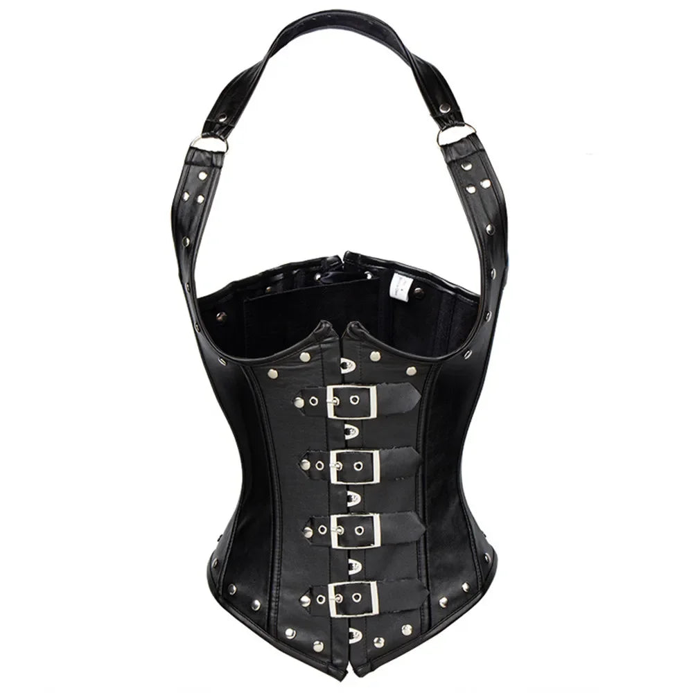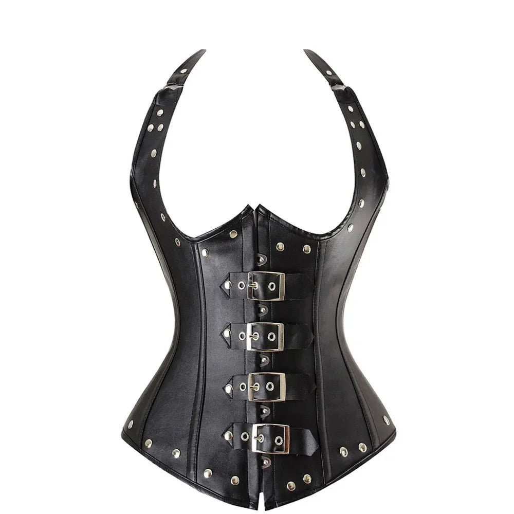 Corselet Vermelho de Pele Sintética com Fivelas – Estilo Punk Rock Feminino preto