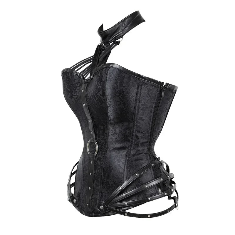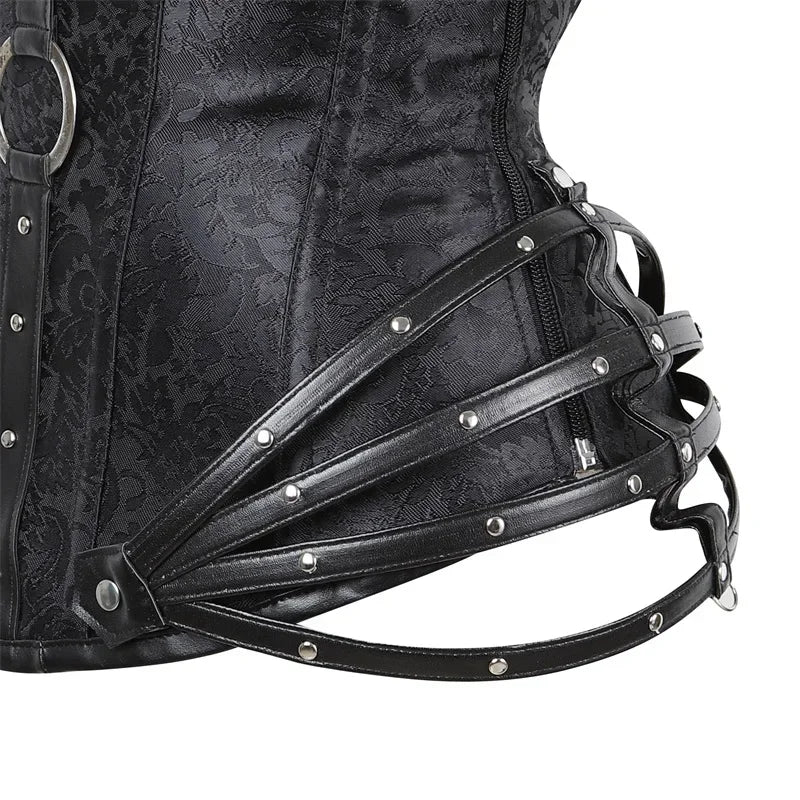 Corselet gótico de metal com tiras e tachas preto punk rock