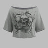 Crop Top Cinzento com Caveiras e Rosas Rock