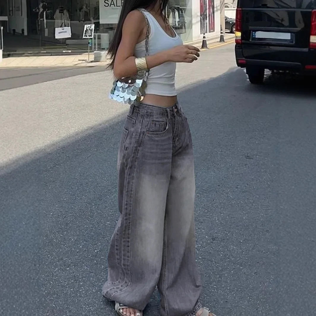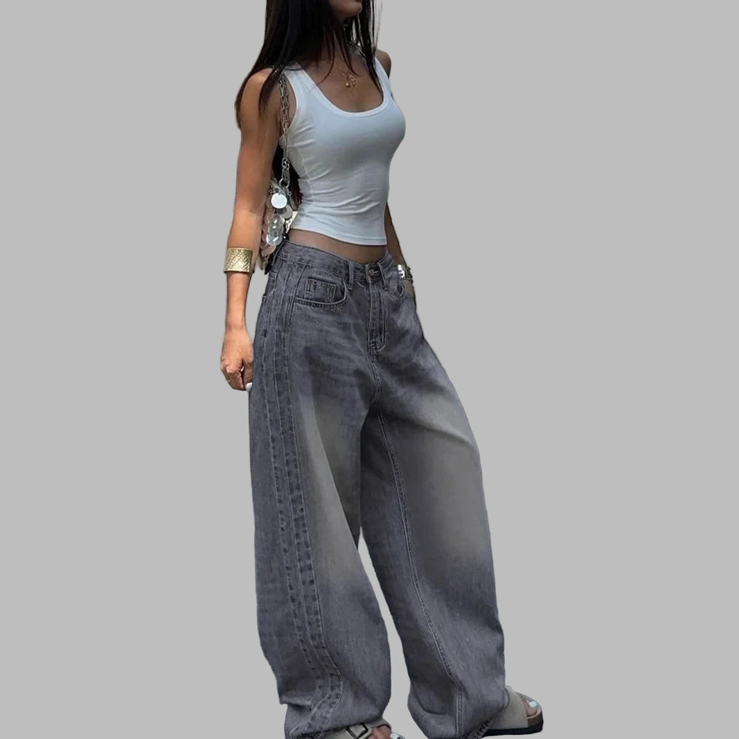 Jeans Baggy Largos Grunge Cinzentos Oversize