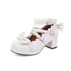 Jirai Kei Mary Jane Brancas com Salto, Renda e Laço