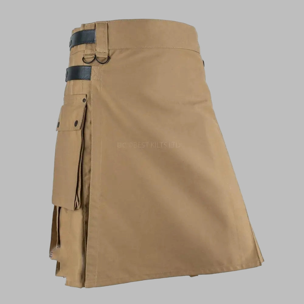 Kilt Steampunk Bege com Correias e Fivelas de Couro