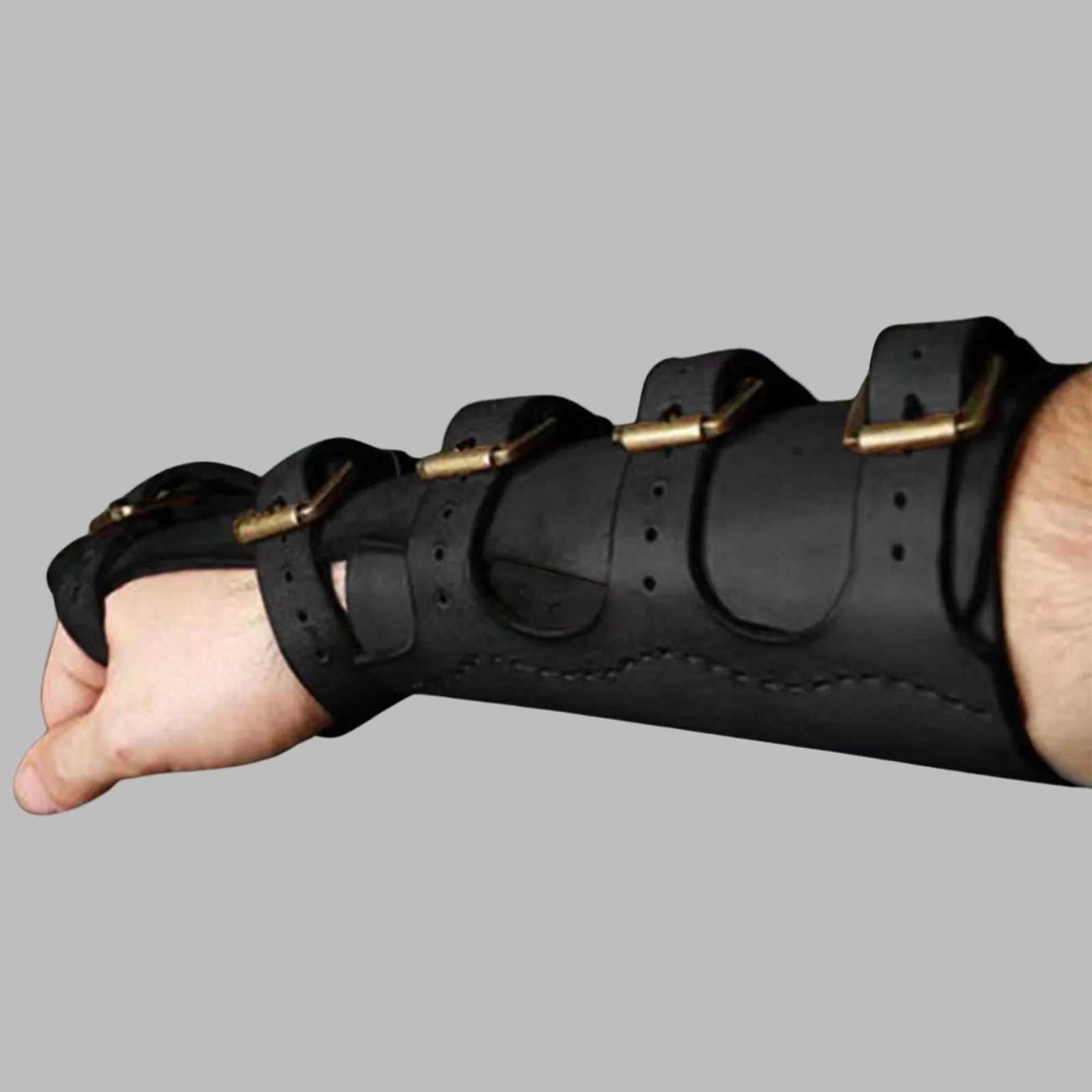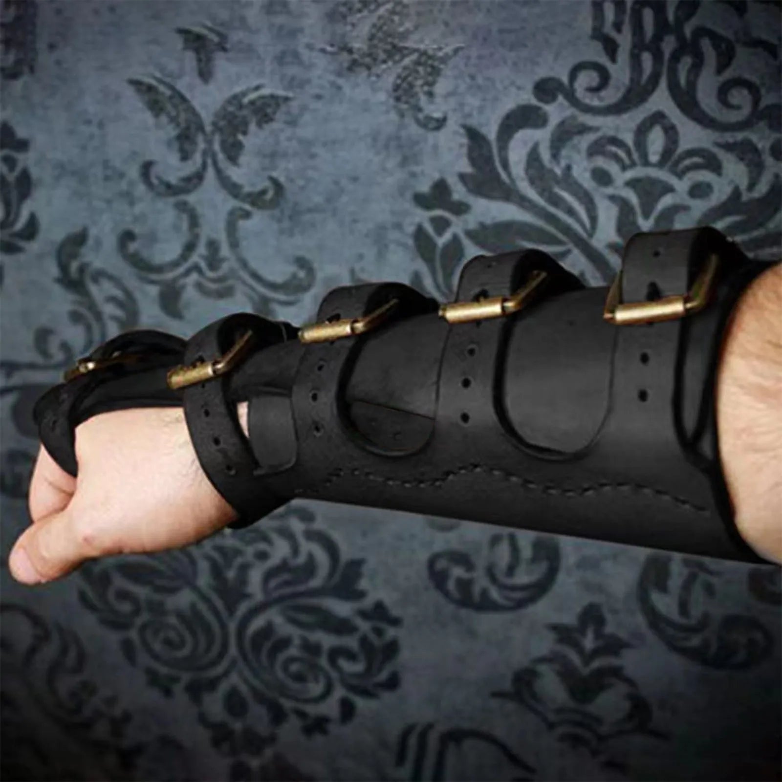 Protetores Steampunk em Pele com Fivelas de Latão Pretos