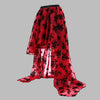 Saia Rock Longa Assimétrica Vermelha com Flores Pretas 6XL